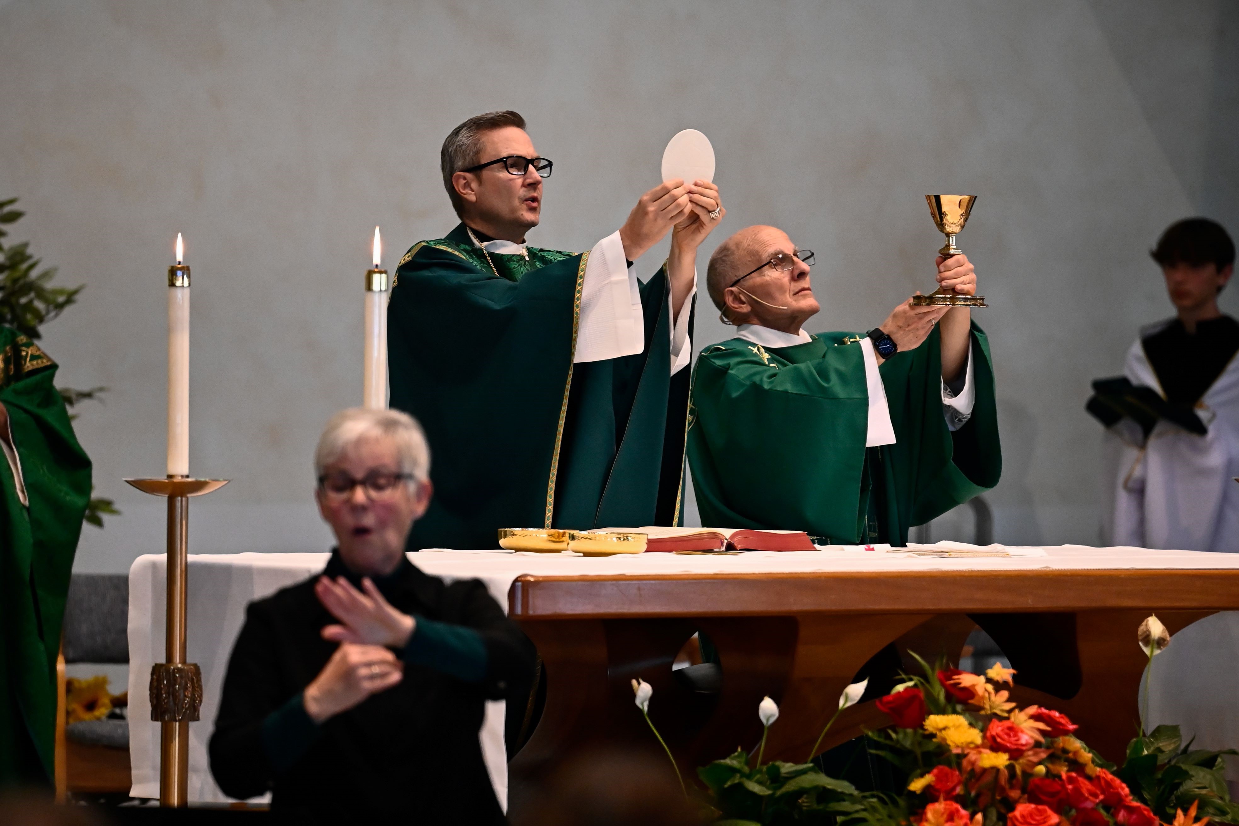 An American Sign Language (ASL) Interpreter can be contracted to provide ASL to individuals attending the celebration of a sacrament (Baptism, First Communion, Confirmation, Matrimony) or a funeral. Diocesan personnel can assist with the scheduling of an interpreter.